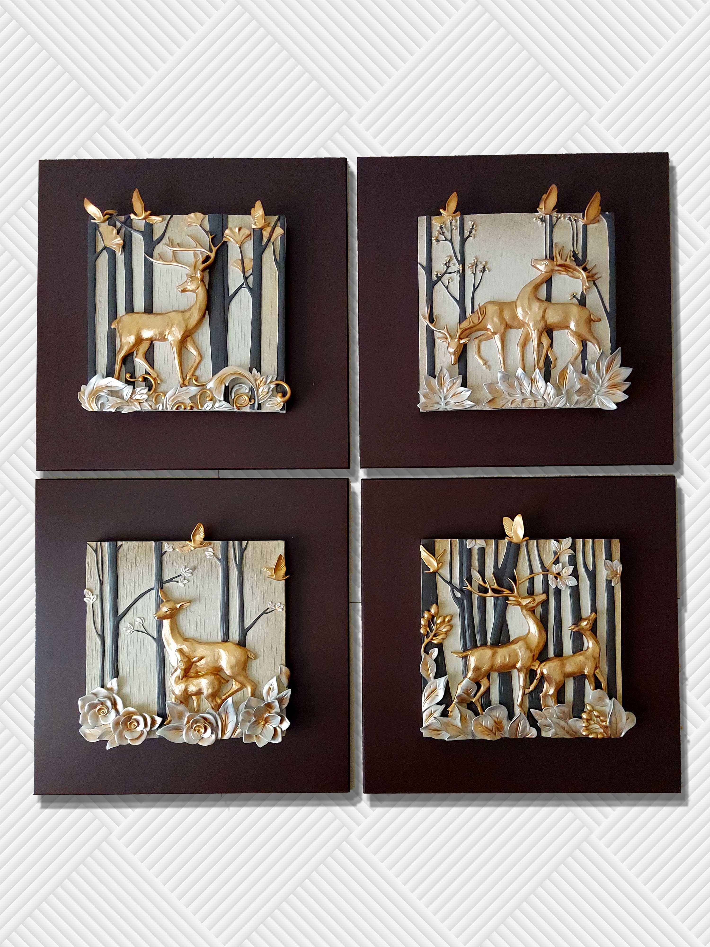 Deers Modern 3D Stone Carving Wall Art - Set of 4