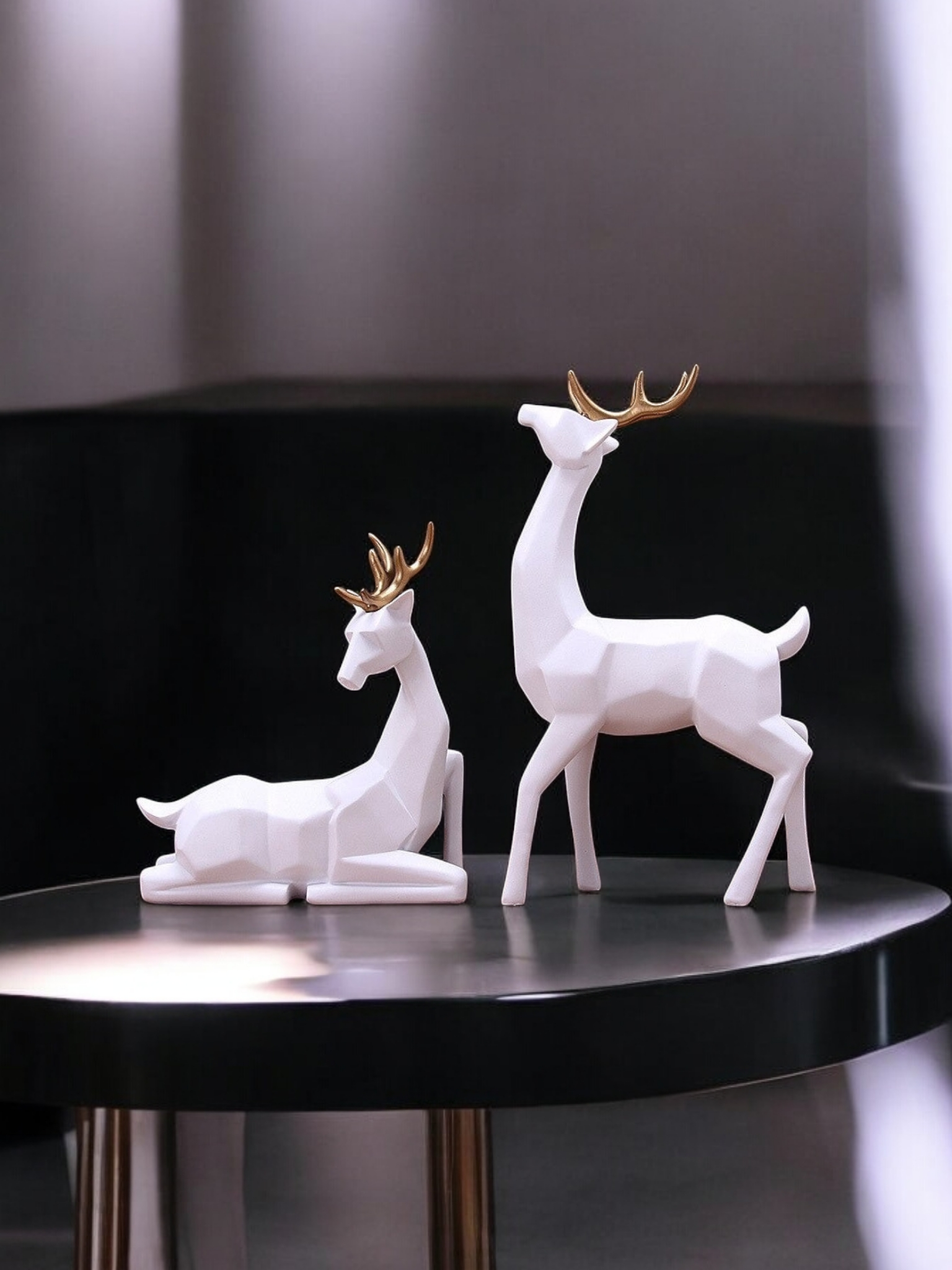 - Deer Sculpture in White Decorative Showpiece Animal Figurine| Table Decor