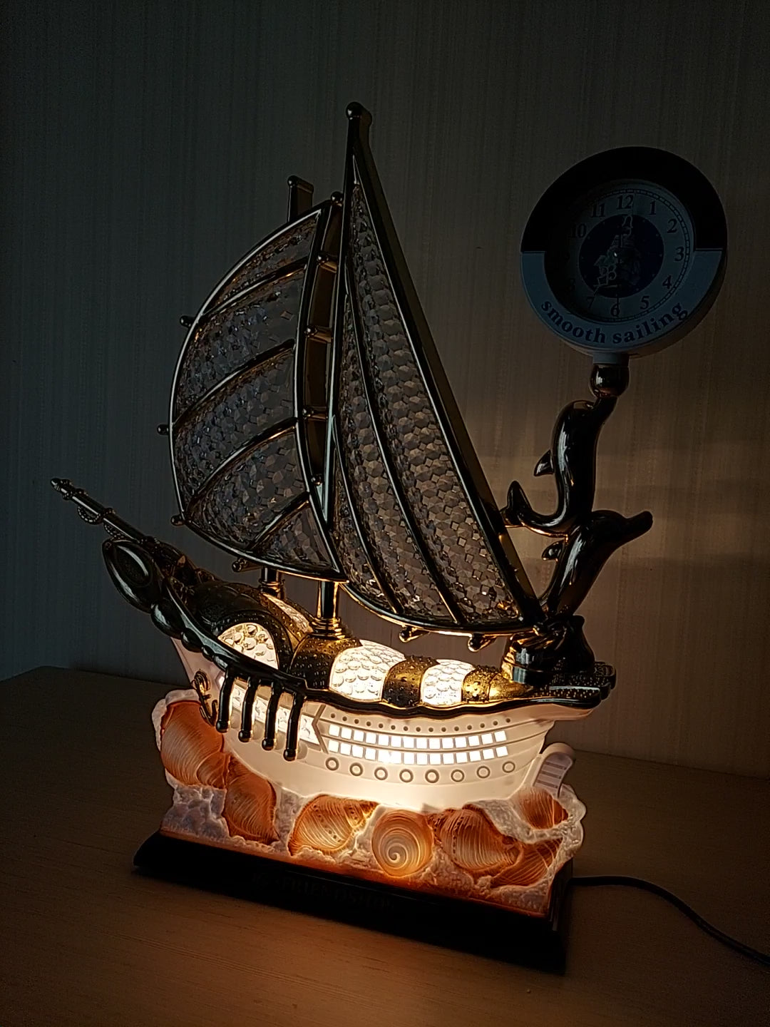 - FunkyTradition Pink Silver Sailboat Vintage Pirates Ship Table Lamp with Alarm Clock for Christmas, Anniversary, Birthday Gift, Home and Office Decor