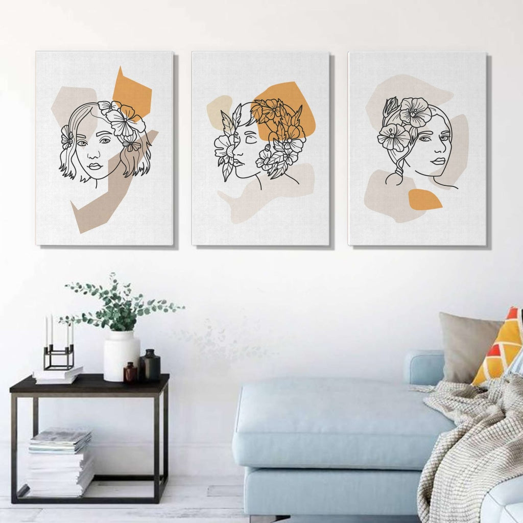 Floral Lady - 3 Panels Art Frame for Wall Decor- FunkyDecors