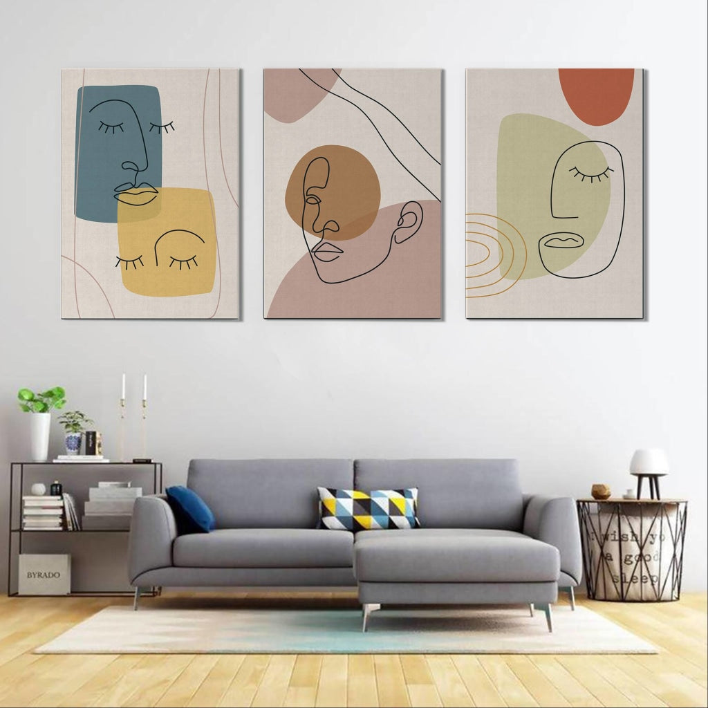 Face Line 3 Panels Art Frame for Wall Decor- FunkyDecors