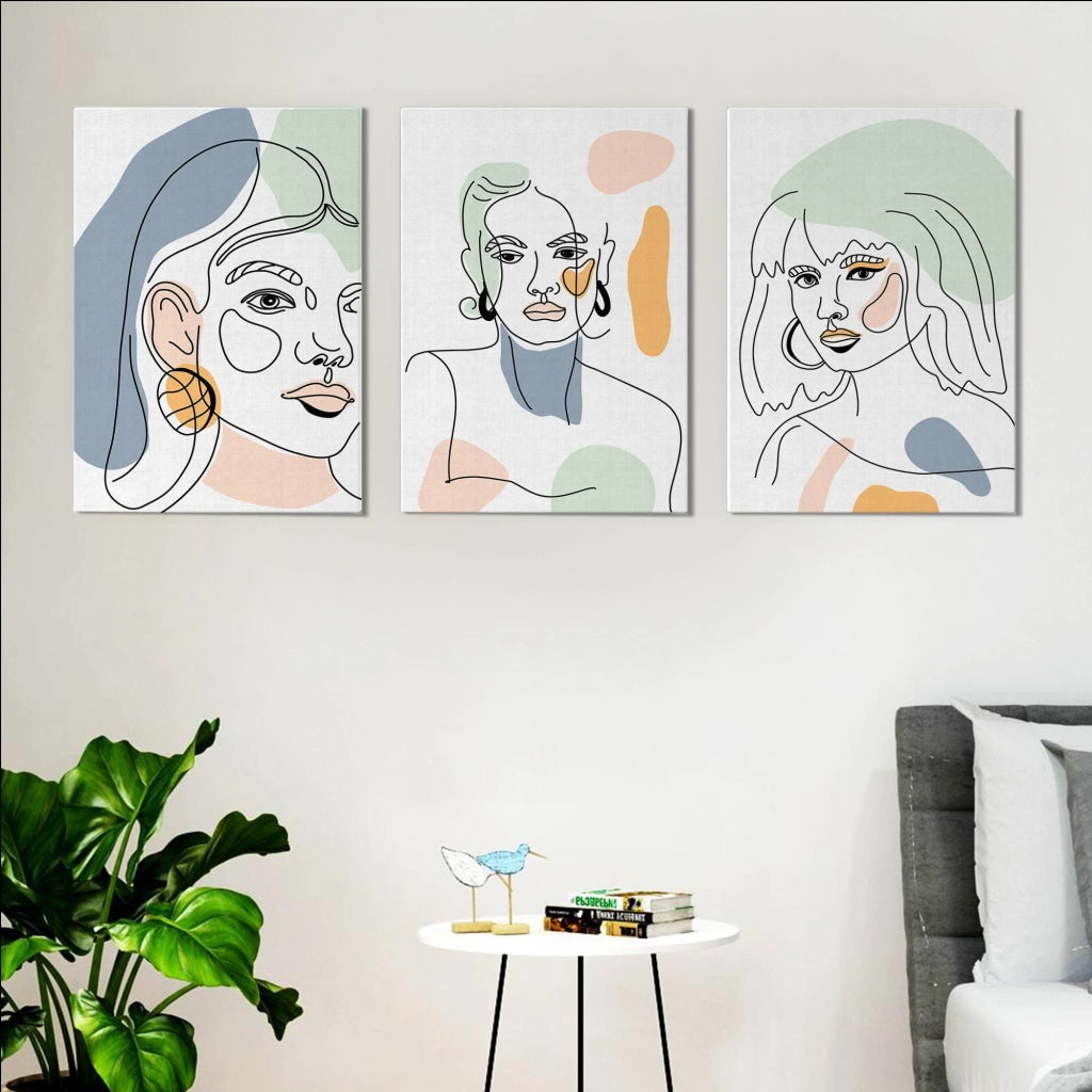 Face Line 3 Panels Art Frame For Wall Decor- Funkydecors Posters Prints & Visual Artwork