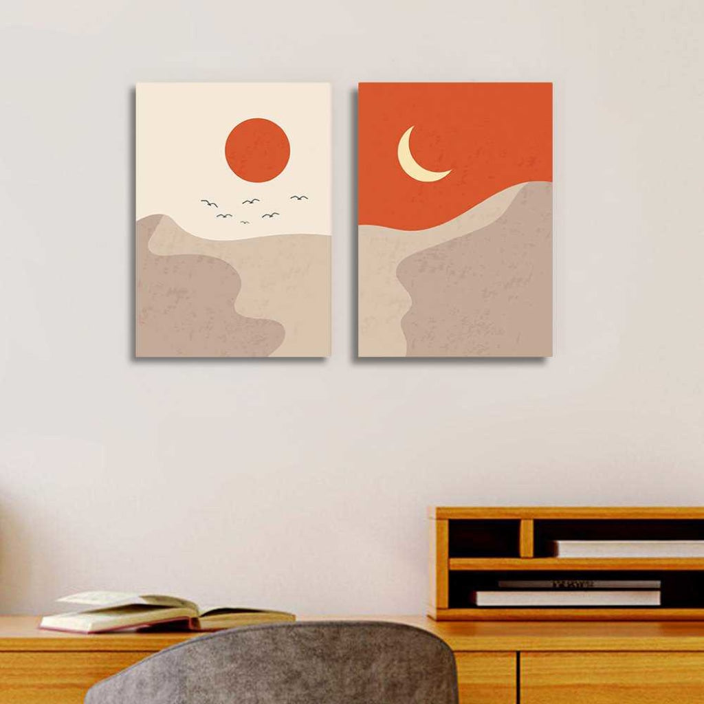 Sun And Moon - Minimal 2 Panels Art Frame for Wall Decor- FunkyDecors