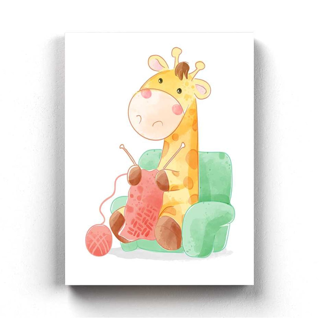 The Knitting Giraffe - Nursery Art Frame for Wall Decor- FunkyDecors