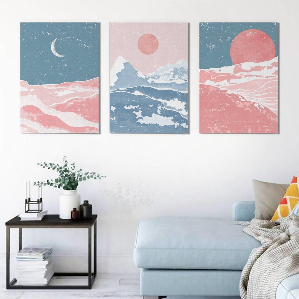 Sun and Moon - Minimal 3 Panels Art Frame for Wall Decor- FunkyDecors