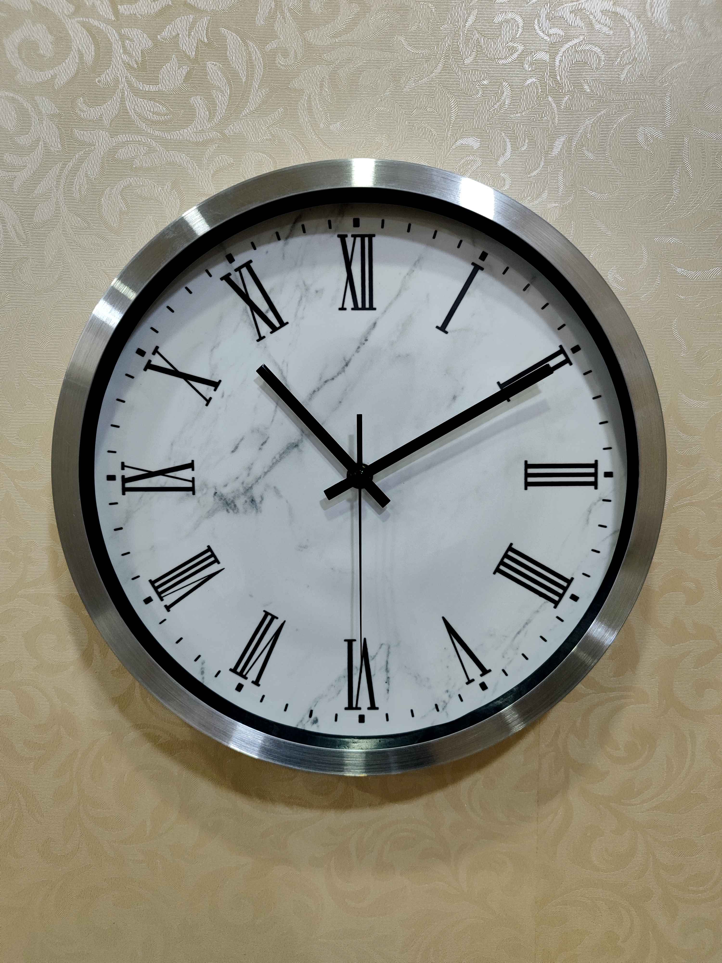 Elevate your home decor with our Modern Roman Numeral Wall Clock, designed with a stunning marble finish and encased in a sleek stainless steel frame. Available in black marble and white marble, this elegant timepiece is the perfect blend of modern minimalism and timeless charm.