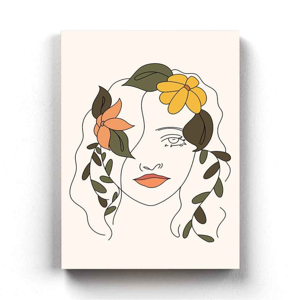 Floral Girl Line Art Frame for Wall Decor- FunkyDecors