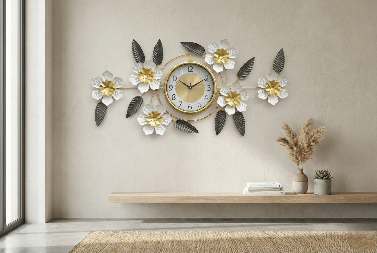 At FunkyDecors, we believe your wall clock should do more than just tell time—it should tell a story of style. Our Decorative Iron Hanging Floral Wall Clock is a stunning fusion of nature-inspired design and modern craftsmanship, perfect for the contemporary Indian home.