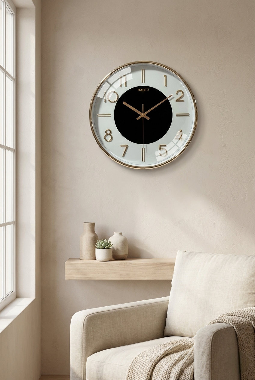 Add a touch of refined elegance to your space with this premium wall clock featuring a gold metal frame, raised 3D numerals, and a stylish two-tone dial. Designed for both beauty and functionality, it blends modern aesthetics with silent performance—perfect for Indian homes.